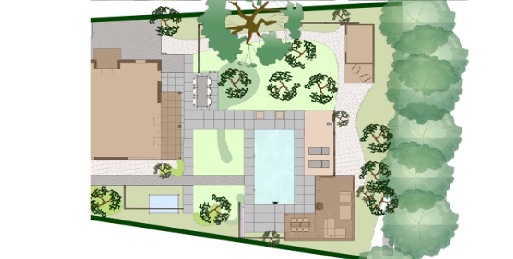 Bij de start van dit project stond het behoud van de bestaande tuinberging centraal. De belangrijkste ontwerpvraag was echter: waar kan het zwembad met bar en overdekt zitgedeelte het beste worden geïntegreerd? Na zorgvuldige afweging is een ideale locatie gekozen die niet alleen volop zonlicht vangt, maar ook voldoende ruimte biedt rondom het bad om te loungen en te ontspannen. Het resultaat is een plek die uitnodigt om te genieten van zon, water en rust.